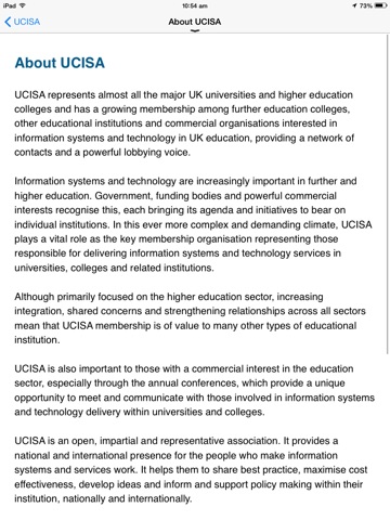 This app gives you a flavour of what does ucisa as well as providing you with details upcoming ucisa events you may be booked on to.
