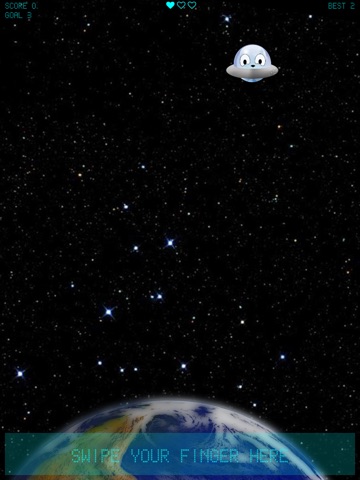 Swipe the finger on the bottom of the screen and aim for the UFO. Miss it, and you lose a life. You start the game with only one life. Reach the goals to gain extra lives, but be carefull, after each goal, the UFO will speed up a little bit. You need to keep up with it. Can you do it? This should be fun...