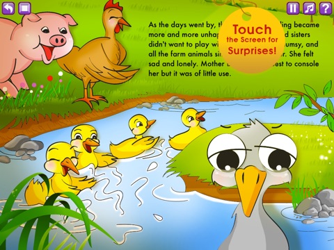 The classic story about the Ugly Duckling, beautifully rendered and professionally narrated, for the iPad and iPhone. Let the Ugly Duckling teach your children about the joys and pains faced while growing up, and watch them become engrossed by the colorful illustrations and soothing story telling narration.