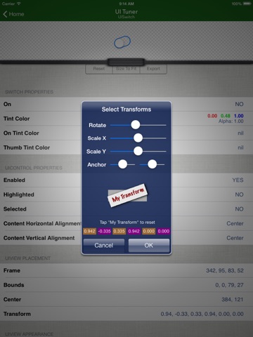 Quickly change opacity, shadow orientation, transform parameters, just about any other visual property … and see the result immediately on your iOS device.