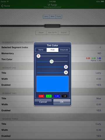 When you have your control tweaked just the way you want it, the app can email the source code to your Xcode system.