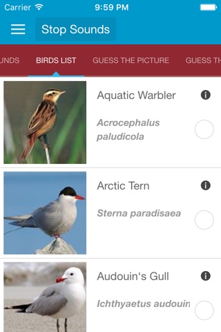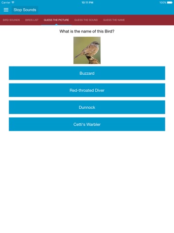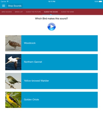 Mini games are also included helping you to learn the different birds found in this app: Guess the Picture, Guess the Sound and Guess the Name.