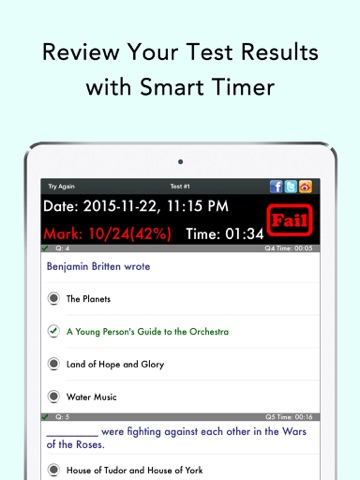 • Intelligent timer will stop when you put the app to sleep or viewing the answer