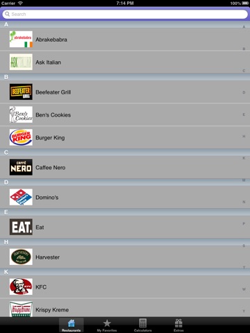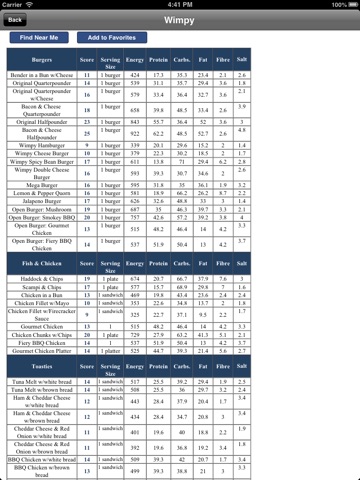 App shows nutritional information of popular British restaurants and fast food chains. Most listed restaurants have following information available: energy/calories , carbs , fat , protein, fiber, sodium etc. Probably the ONLY such app you can find that is designed SPECIFICALLY for UK users.