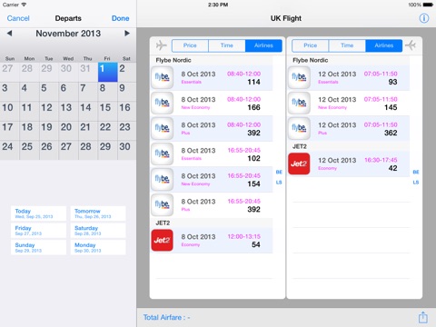 The real simplest DOMESTIC flight search application that you can compare price from major local airlines in UK, quickly and easily from your iPhone/iPad. All available flights are provided in 3 categories; by price, departure time, and by airlines, to maximally facilitate your comparison.