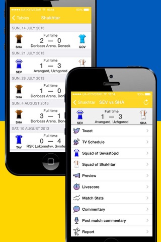 Using Ukrainian Football 2016-2017 - LIVE! you also get immediate access to the Tournament table, Schedule, Teams, Events in Matches, News and Statistics.