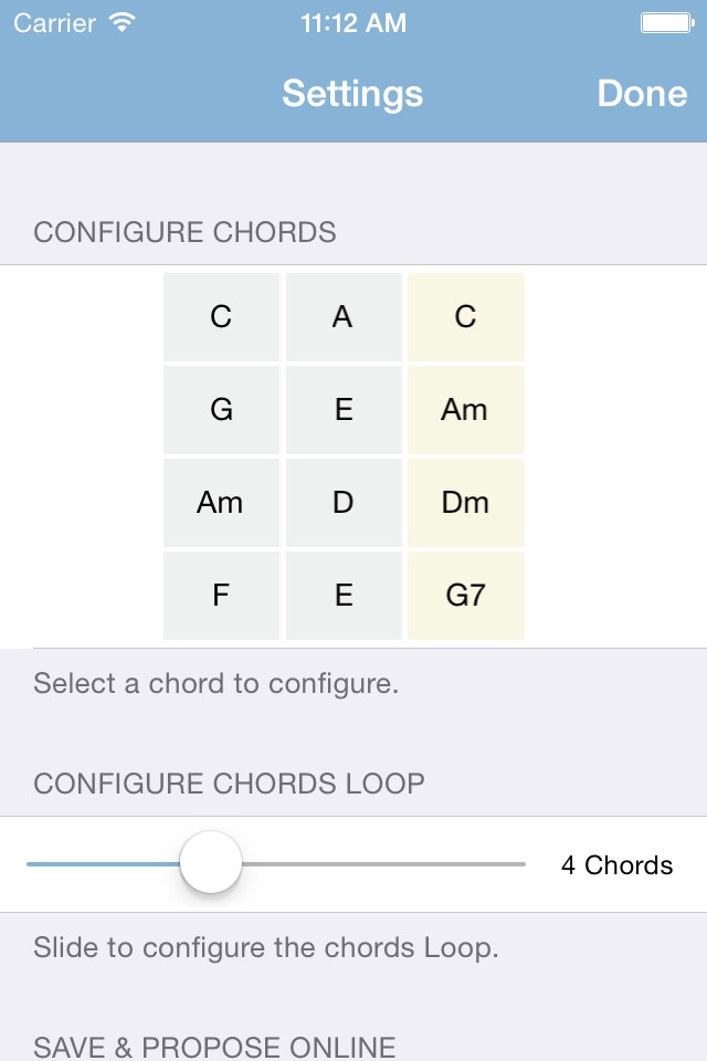 2. Move the slider to fit the number of chords you want to loop through;