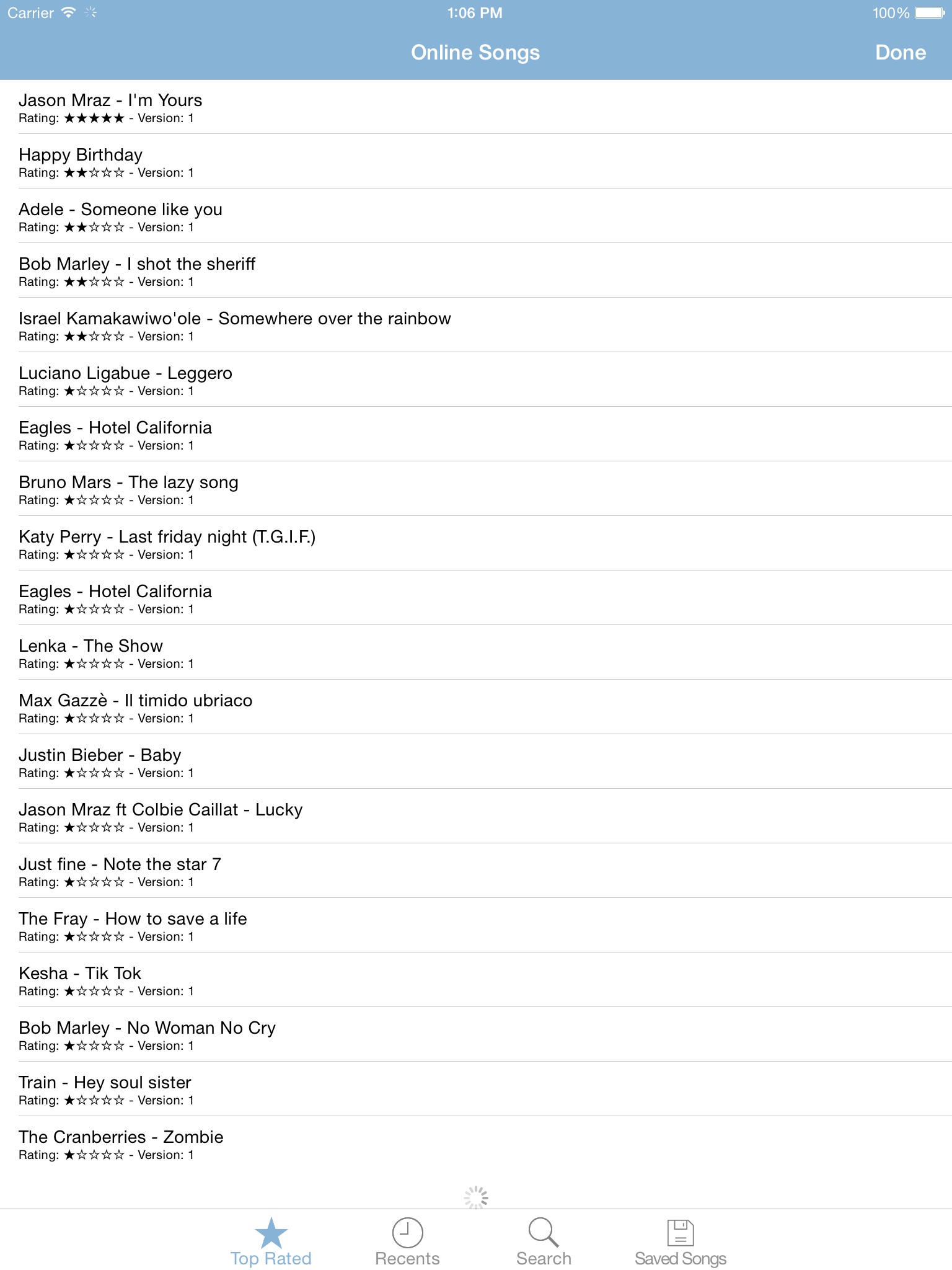 Start play immediately, choose among the songs already available tapping the song (note) icon.