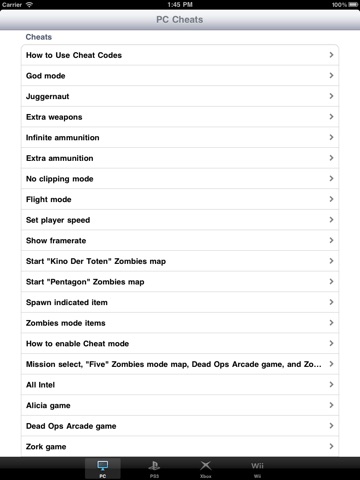 With this app you get cheats code for all four platforms PC, PS3, Xbox 360, Nintendo Wii