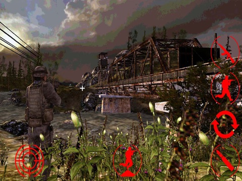 You can use the arrows on the left side of the screen to control forward, backward and sideways movement of your soldier.