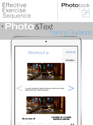 Our Personal Fitness Photo Book Trainer Apps take you through multiple workouts and many new and effective body changing exercises with easy to follow photo workouts and descriptions.