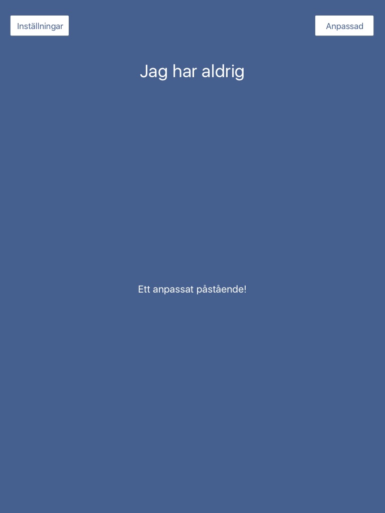 Om du aldrig har spelat Jag har aldrig så kanske dina vänner har det - och det är precis det som spelet går ut på. Tala sanning om de påståenden som dyker upp på skärmen genom att dricka valfri dryck om påståenden stämmer in på något som du gjort/erfarit. Vem är mest vågad i ditt umgänge? Ta reda på det nu!
