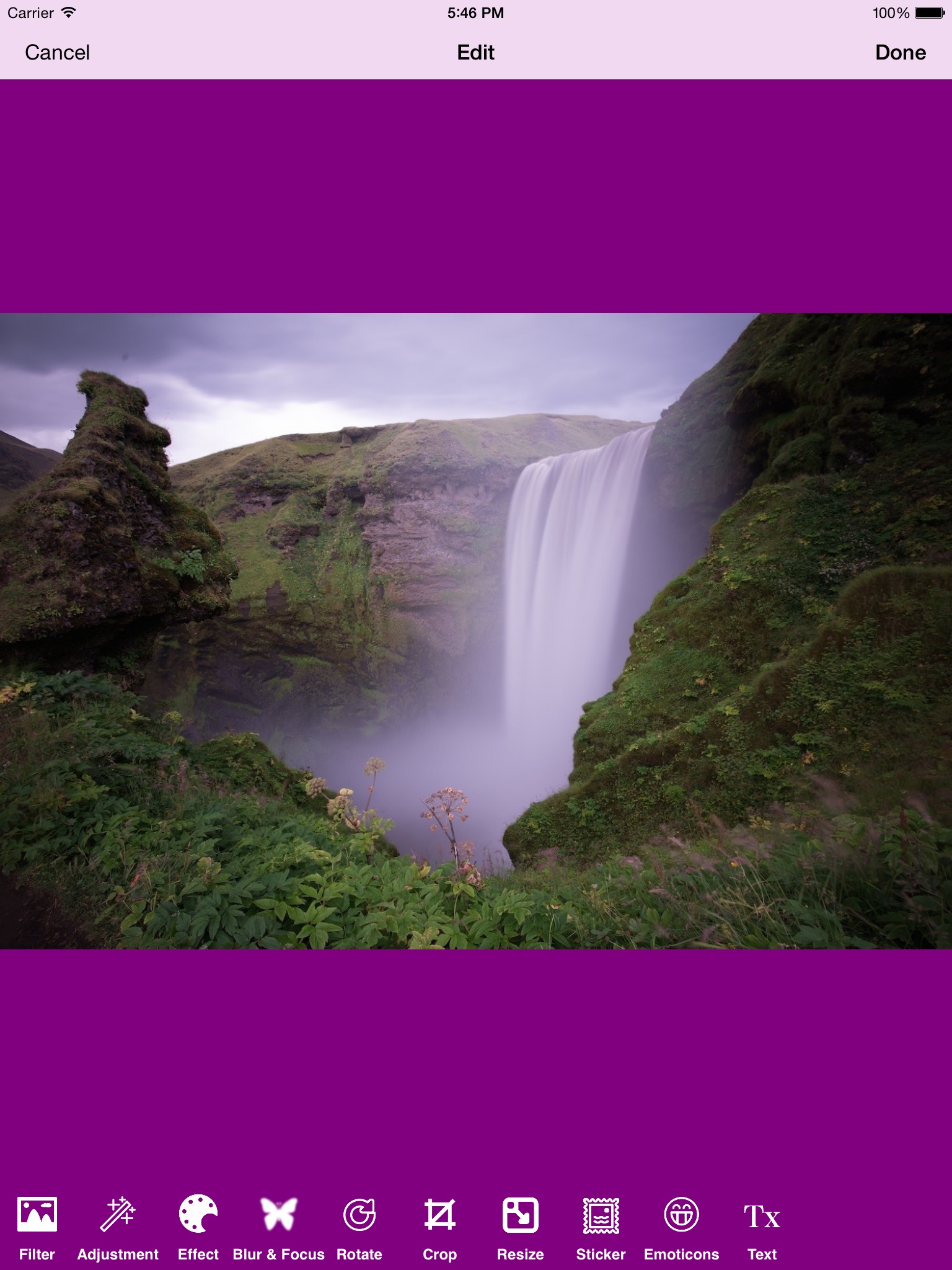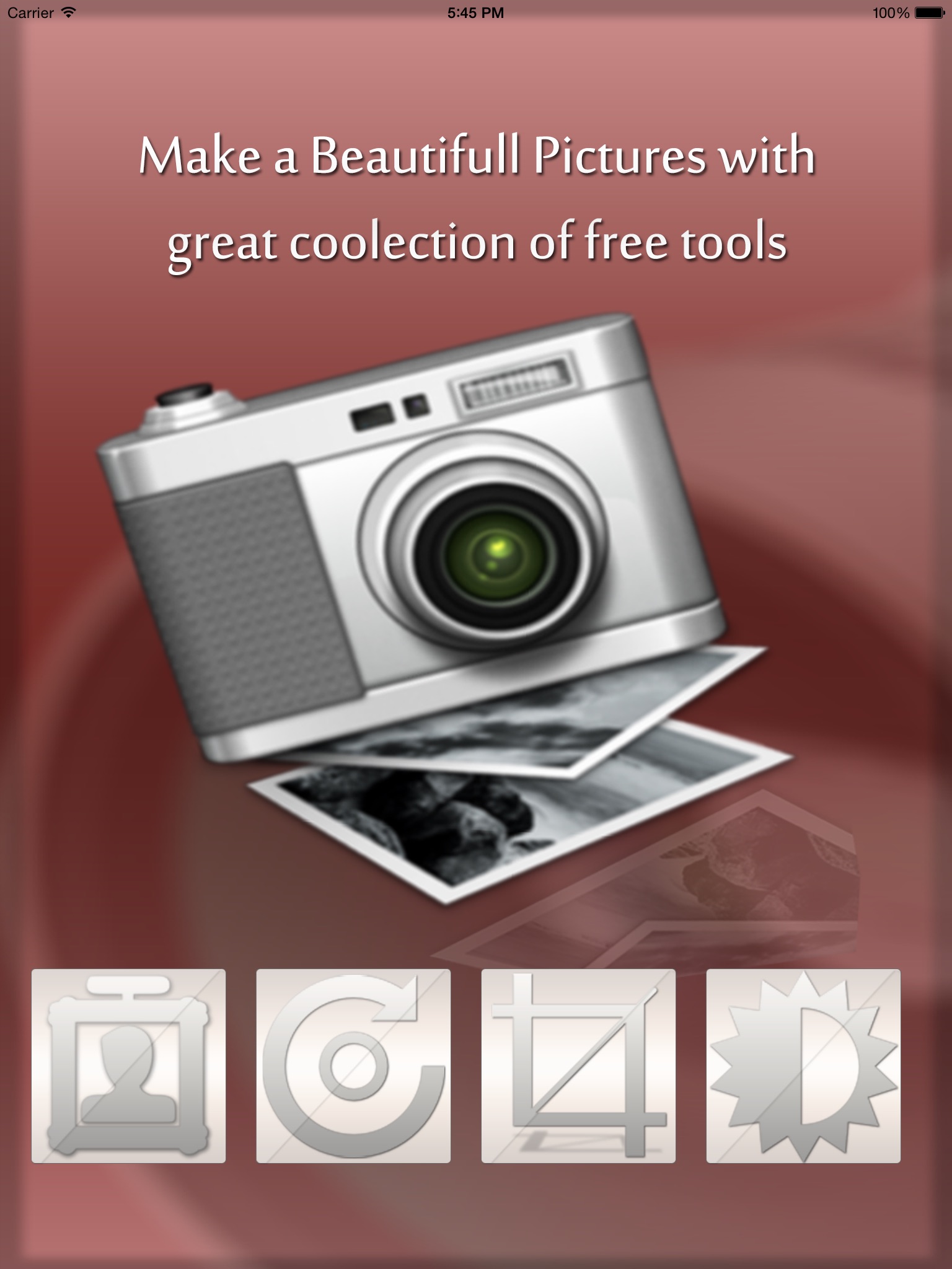 Add a amazing Attractive effects to your photo-make your photo more Beautiful using "Ultimate Photo Effects" tool-apply good effects Filters ,shapes ,patterns ,frames/borders ,stickers ,Text to the photo-Adjust the brightness of your choice , do cropping , blurring , Rotation , resizing of the images-This iOS tool is designed with you in mind . Making it fun , effortless , attractive , great looking , Beautiful , totally unique and completely of your own choice to edit your photo.