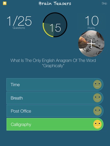 Get ready to play one of the best brain teasing quiz game. Get access to dozens of questions, featuring a broad range of categories that will surely wake up your mind.