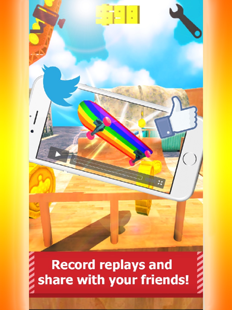 Use swipes to preform tricks and push the board forward with natural ease. You can also record video replays and send them to your friends! This app has everything you need to become a legendary skater.
