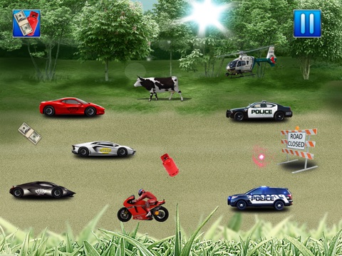 Take the ultimate thrill ride in these luxury sport cars and out run the police cars, sherifs trucks and police helicopters on the windy back roads while avoiding road blocks, rampaging cows and motorcycle riders who dont want to share the road. Collect all the money and gas you can to keep going and fuel your need for speed!