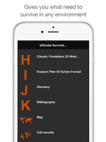 The main feature of this app is a worldwide- all weather conditions survival manual that gives you what need to survive in any environment. The app will also help you find your position thru WGS-84 coordinates, and if you need to hunt, this app contains all the calls you will ever need.