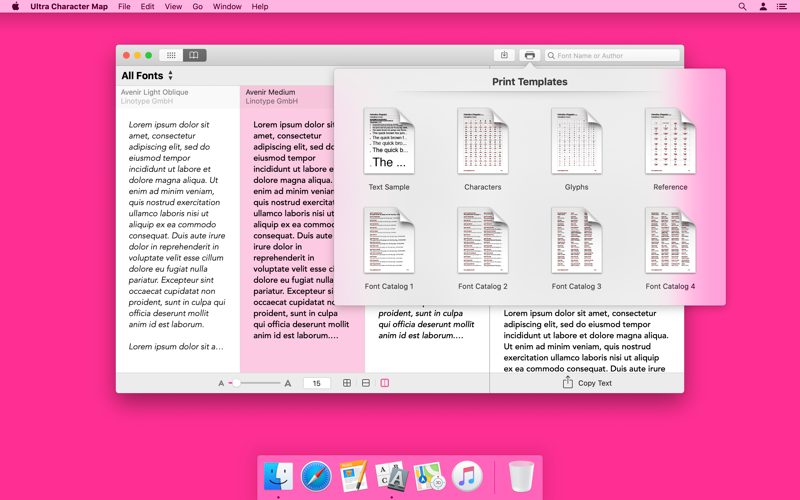 - Print font catalogs and font samples. Ultra Character Map lets you print custom font catalogs, font samples and character maps or save them as PDF documents.
