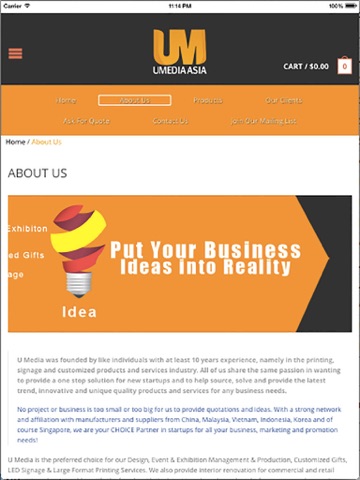 A Mobile App that will browse the UMedia Asia site. This app is for device iOS 7 or later. UMedia will help you navigate through your iOS iPhone devices in UMedia Asia site.