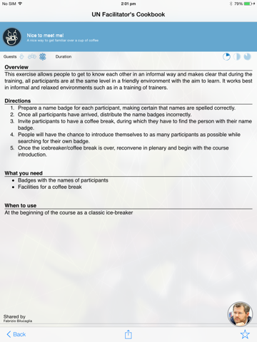 The UN’s Facilitator’s Cookbook is a community effort by UN trainers and facilitators for fellow colleagues. It contains a collection of training methodologies and tools -i.e. “recipes” - that contributors to this collection have at some point in their careers found helpful to design, manage and/or evaluate learning processes.