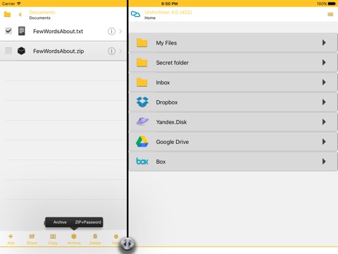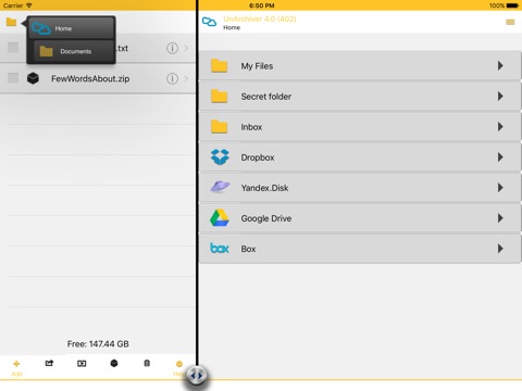 Вначале скачал бесплатную версию, естественно пустая. Потом оплатил что бы была функция распаковывать zip файлы из Dropbox, но он не оказался не способен на это.