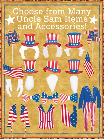 We Want YOU.... to Dress up like Uncle Sam!! Celebrate Independence Day with this cute, fun dress-up app! You can use photos of yourself, your family, your friends, or your pets!