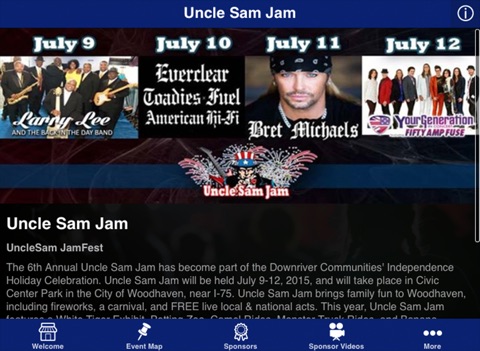 Come to Uncle Sam Jam, July 9-12, 2015 at Civic Center Park in Woodhaven, MI!