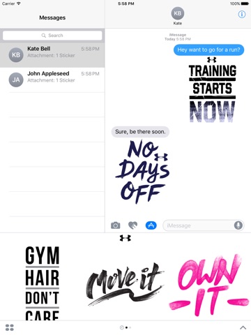 Keep your conversations going strong with new stickers from Under Armour! Featuring motivational graphics and animations of your favorite pro athletes, these stickers will help you and your friends power through your day.