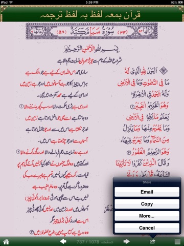 This unique application presents with the following essential tools to understand The Holy Quran for Urdu readers: