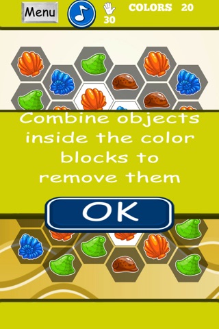 "Slide your finger through the corals to combine them and complete missions. Your mission is remove the colorful tiles, each time you combine a coral inside it, the tile color will change, continue to change it until it disappears. Be fast when the level is based in time and when the level is based in number of movements. Calculate exactly what movement will be the best."