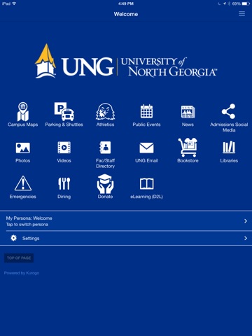The official University of North Georgia app enables prospective and current students, faculty, staff, alumni, and community members to connect to UNG anywhere, anytime. UNG Mobile provides convenient access to UNG maps, news, events, directories, athletics, course listings, shuttle and parking updates, and more.