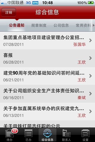 2. 查阅公告通知、规章制度、公司信息、常用资料和法律法规;