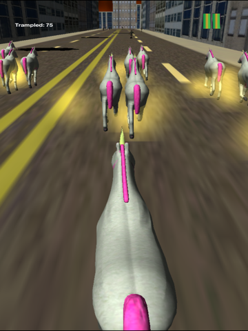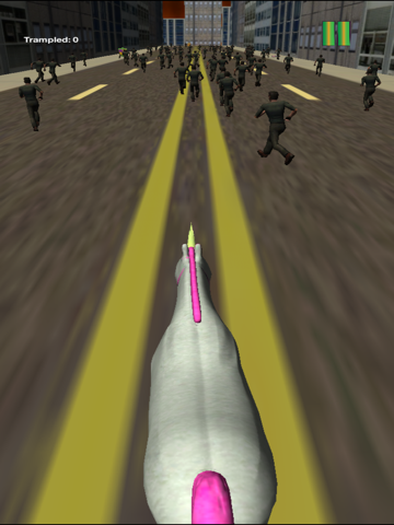 The controls are simple. Tilt your device to control your zombie unicorn. Run over as many people as you can and collect power ups before you fall in a hole or run into a mine. For each person you trample you earn in-game money that you can spend in the store to purchase more unicorns. There are currently four unicorns to purchase in the store. More unicorns are coming. Some will even have exclusive special abilities.