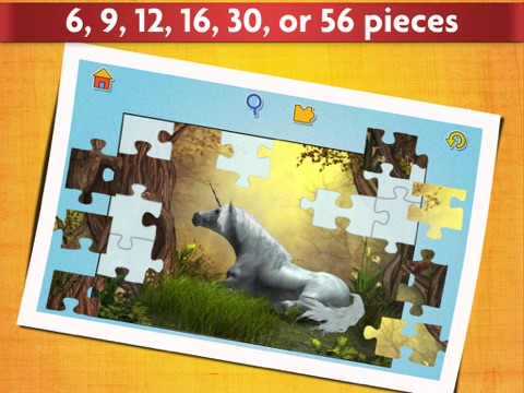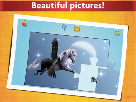 For children who love prancing unicorns and winged Pegasus horses, "Unicorns Puzzle Game for Kids" has just the fantasy setting for you! With over 20 different jigsaw puzzles featuring beautiful pictures your kids will be sure to find a favorite horse among these magical creatures.