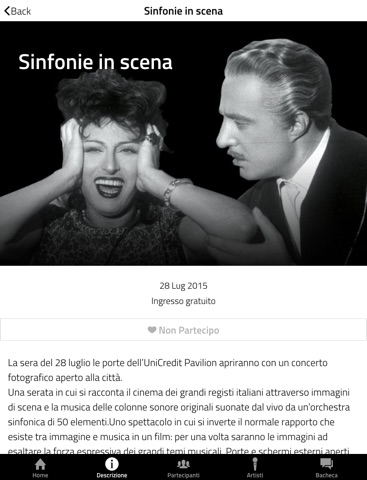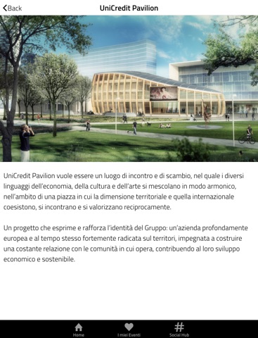 The application is designed to discover UniCredit Pavilion the new multi-purpose center in the heart of Milan. With the APP you can learn interesting details about the project and have information on the initiatives proposed by UniCredit Pavilion. Through the APP you can consult the event calendar of and buy tickets.