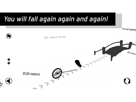 Unicycle dont let you to balance , you will fall and fall again. Keep calm and remember physics rules.
