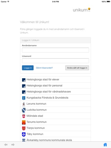 - Alla delar av Unikum är mobilanpassade och anpassar sig efter t.ex. skärmbredd. Specifika mobilfunktioner finns för att hantera inlogg med Mobilt BankID, för att spara lösenord och för att ta bilder direkt i appen.