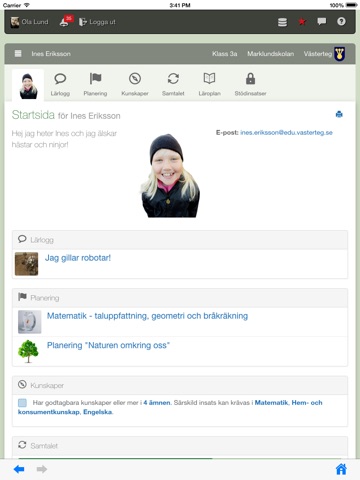 Elever - kan se uppgifter och lämna in sina arbeten, och jobba med planeringar, matriser, lärloggar och utvecklingssamtal.