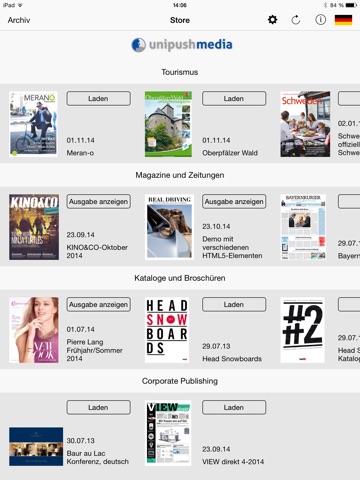 Unipush print is the universal app solution for digital publishing of printed products of all kinds. In Unipush print you´ll find magazines, journals and newspapers, but also books, brochures and catalogs. Many publications contain videos, links, maps, image galleries and interactive HTML5 elements.