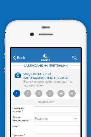 - Да подадете претенции за обезщетение по действащи застраховки с всички необходими данни и снимки директно от мобилното устройство.