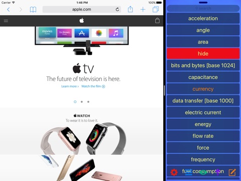 - Hold a unit name and drag to the top to change the reference unit (3D Touch : Force Touch selects base unit, with haptic feedback if turned on in Settings)