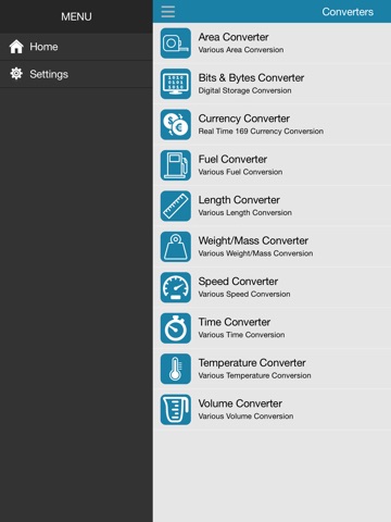 Unit Converter application allows you to convert Area, Bits & Bytes, Fuel, Length, Weight/Mass, Speed, Time, Temperature, Volume, Live 169 Countries Currency Converter etc...