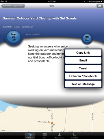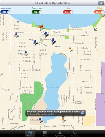 Use the United Way of Northwest Michigan Volunteer App to find volunteer opportunities near you. The app has an easy-to-use map feature that allows you to map yourself and the location of current opportunities. The App also has a searchable database.