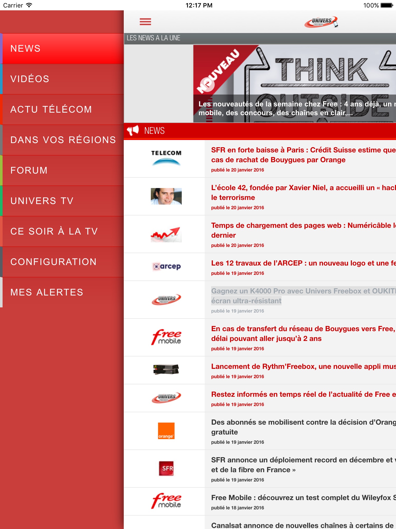 Application officielle Univers Freebox, la référence de lactualité de Free.