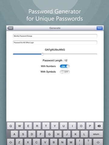 The Universal Password Manager helps your keep track of your passwords with ease. In addition, it has a password generator function to assist in generating strong password combinations to keep your data secure.