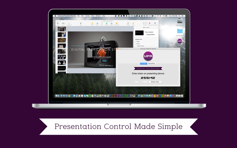 All you need is your Mac, an iOS or Android device, and an internet connection, to be presenting in no time! Universal Presenter Remote natively supports both iPhone and iPad with comprehensive instructions to make setup a breeze. All you need to do is download the companion application for your iOS or Android device, download this application from the AppStore, and follow the simple instructions for setup in seconds. Companion applications and further instruction can be found at universalpresenterremote.com