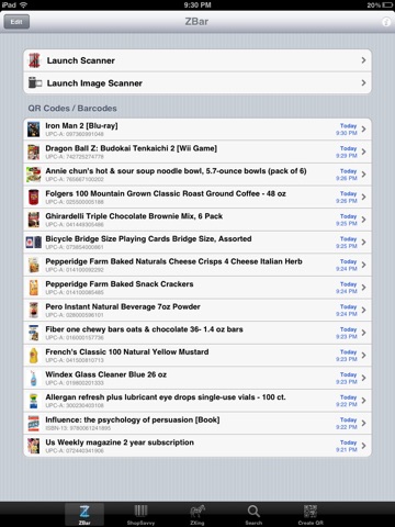 Universal Scanner is an advanced QR code and barcode scanner. Bundled within the app are 3 state of the art scan technologies leveraging the power of ZBar, ShopSavvy, and ZXing.