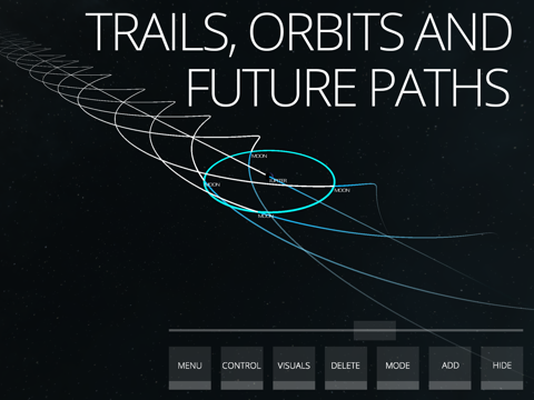 By toggling the different visual modes, you are able to observe the past trail taken by a celestial object, view its current elliptical orbit, or predict where it will go by toggling the future path.