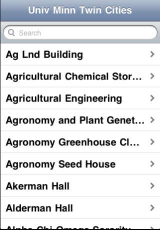 Search through dozens of buildings instantly for that hard to find location. Even includes alternate names for buildings with pin point coordinates.
