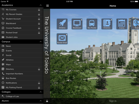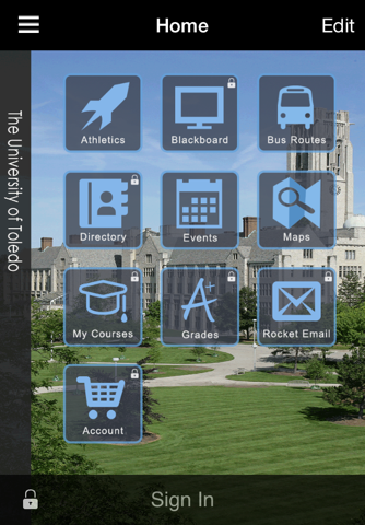 With this app, student can check their class schedules and recent grades, view and pay bills, and submit feedback on classroom experiences. Other features include Blackboard and Rocket Email access, campus maps and bus routes, news and events, student job postings, and update parking permits. Add home screen shortcuts to your most frequently-used features by touching the "edit" button at the top right.